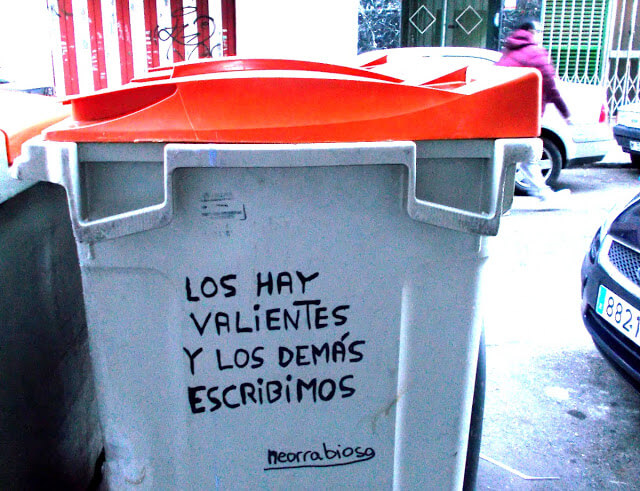 Si quieres saber más y leer más sobre Neorrabioso, puedes acceder a su libro Batania, libro que incluye setenta y cinco poemas y cincuenta y cuatro pintadas seleccionadas entre un total de cuatrocientas setenta y ocho que han decorado o manchado según otros las calles de Madrid desde el año 2008.
